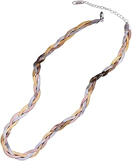 Colar Feminino “Tressed Deluxe” Trançado Aço Inoxidável Antialérgico – Corrente Curtinha Tricolor para Looks Modernos – Acompanha Bolsa de Veludo