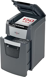 Fragmentadora de papel automática Rexel 150X, ideal para uso doméstico ou pequenos escritórios. Destrua documentos de forma segura e prática.