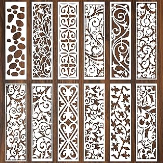 Conjunto de 12 estênceis reutilizáveis para pintura, com padrão de borda e textura de folha. Ideais para modelos de mídia mista. Ferramentas de desenho para artesanato em tecido, lona e madeira.