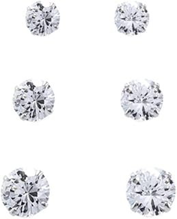 Conjunto de três brincos em prata 925 com zircônia solitário, ideais para quem busca peças antialérgicas e de alta qualidade.