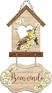Placa decorativa em MDF com design de Casa de Passarinhos, ideal para dar as boas-vindas em sua casa. Dimensões de 16x31cm.